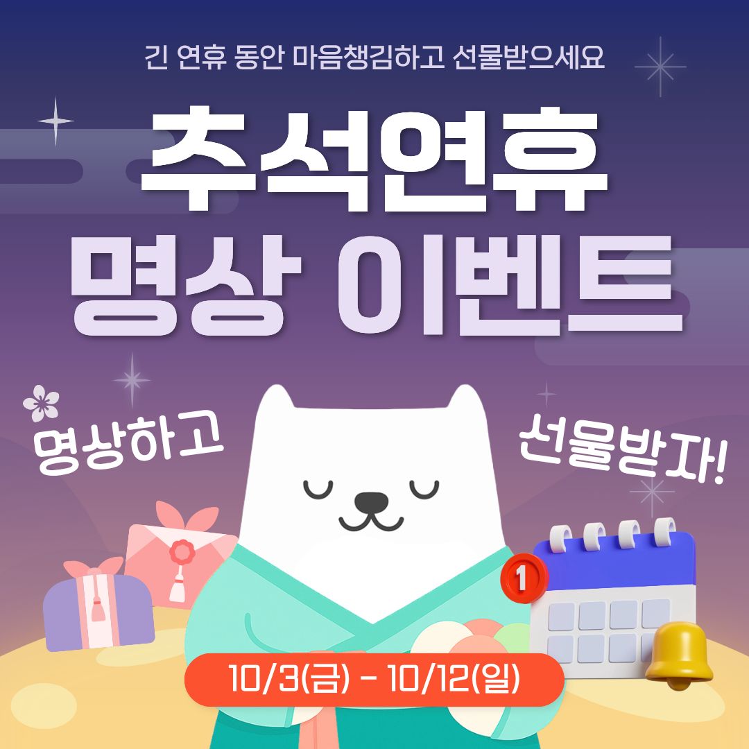 ์ถ์์ฐํด๋ฅผ ๊ฐ์ฅ ๋ฟ๋ฏํ๊ฒ ๋ณด๋ด๋ณด์ธ์! ๐๊ฐ๋์ ๋๋ฌด ๊ธด ์ฌ์ ์๊ฐ์ด ๋ฌด๋ฃํ๊ฑฐ๋ ๋ง์์ด ๋ณต์กํด์ง ๋๊ฐ ์์ฃ . ์ด๋ฒ ์ถ์์๋ ๋ง๋ณด์ ํจ๊ป ๋งค์ผ ์งง์ ๋ช ์์ผ๋ก ๋ง์์ ์ ๋ฆฌํด๋ณด๋ ๊ฑด ์ด๋จ๊น์? ๐ 10์ 3์ผ๋ถํฐ 11์ผ๊น์ง ์ด๋ฒคํธ์ ์ฐธ์ฌํ๊ณ ํน๋ณํ ๋ฆฌ์๋๋ฅผ ๋ฐ์๋ณด์ธ์! ์ฐธ๊ฐ์ ๋ง๋ณด์ง๊ธฐ LIVE ๋ช ์์ธ์ ์ ์ด๋ํ๊ณ , ๋ผ์ดํ์คํ์ผ ๋งค๊ฑฐ์ง <์ปจ์ ์ง> '๋ช ์'ํธ๋ ์ ๋ฌผํด์! ์ถ์ ์ฐํด์๋ ๋ง์์ฑ๊น์ผ๋ก ๋ ํ์๋กญ๊ฒ ๋ณด๋ด๋ณผ๊น์?๐ง