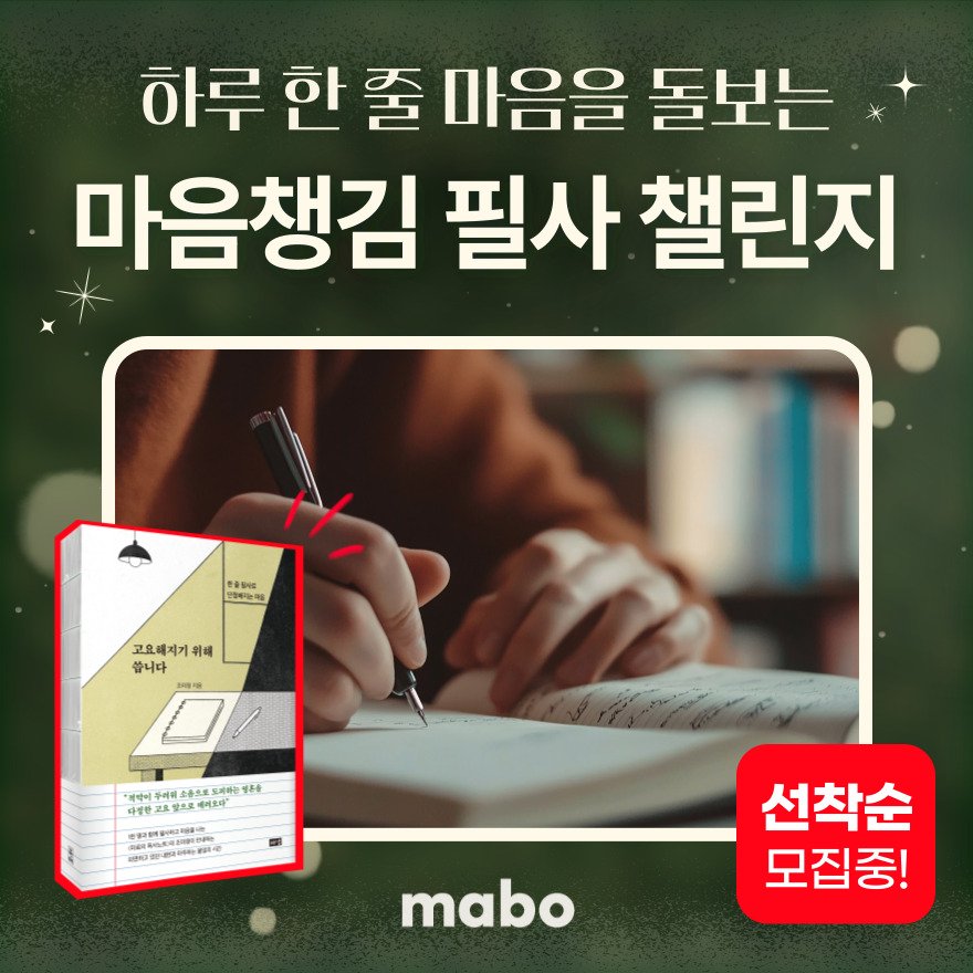 ์ ์ฑ๋ฆฐ์ง๋ฅผ ํตํด ๋ง์์ฑ๊น์ ๊ธธ์ก์ด๊ฐ ๋์ด์ค ๋ฌธ์ฅ์ ์์ผ๋ก ์ง์ ์จ๋ด๋ ค๊ฐ๋ฉฐ '์ง๊ธ ์ด ์๊ฐ'์ ๋จธ๋ฌด๋ ์ฐ์ต์ ํด์! ํ ๊ธ์ ํ ๊ธ์ ๋๋ฐ๋๋ฐ ์ฐ๋ค ๋ณด๋ฉด ์ด๋์ ๋ณต์กํ๋ ๋จธ๋ฆฟ์์ด ๊ณ ์ํด์ง๊ณ , ์กฐ๊ธ์ ํธ์ํด์ง ์ ์์ ๊ฑฐ์์. ๐์ต์ฐ์ ์ฐธ๊ฐ์ 20๋ช